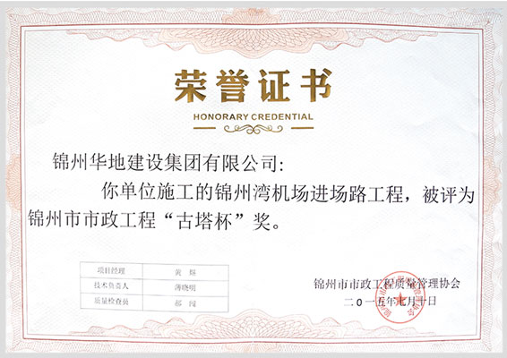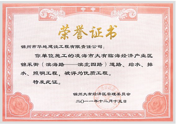 企業(yè)10余年開(kāi)拓進(jìn)取過(guò)程中先后榮獲“遼寧省建筑業(yè)優(yōu)秀企業(yè)”“遼寧省AAAAA級(jí)信用企業(yè)”“遼寧省建設(shè)工程優(yōu)質(zhì)結(jié)構(gòu)企業(yè)”“遼寧省建設(shè)工程世紀(jì)杯(省優(yōu)質(zhì)工程)企業(yè)”連續(xù)6年榮獲“遼寧省守合同重信用企業(yè)”,連續(xù)5年榮獲“重點(diǎn)工程招投標(biāo)領(lǐng)域AAA級(jí)信用企業(yè)”,連續(xù)10年榮獲“錦州市先進(jìn)企業(yè)”及安全生產(chǎn)目標(biāo)管理先進(jìn)單位”“優(yōu)秀誠(chéng)信企業(yè)””國(guó)家AAAA級(jí)旅游景區(qū)””省級(jí)生態(tài)旅游示范區(qū)””遼寧省省級(jí)旅游度假區(qū)”等榮譽(yù),并通過(guò)質(zhì)量管理體系、環(huán)境管理體系、職業(yè)健康安全管理體系認(rèn)證。