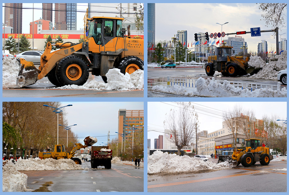 11月9日,在政府有關(guān)部門(mén)的指揮下,公司積極組織鏟車(chē)、翻斗車(chē)等多臺(tái)清運(yùn)設(shè)備,對(duì)中央南街至南山隧道路段、市政府周邊道路至凌川以南、濱河路的東轉(zhuǎn)盤(pán)至凌西大街橋下進(jìn)行清雪工作,當(dāng)天均能順利通車(chē)。