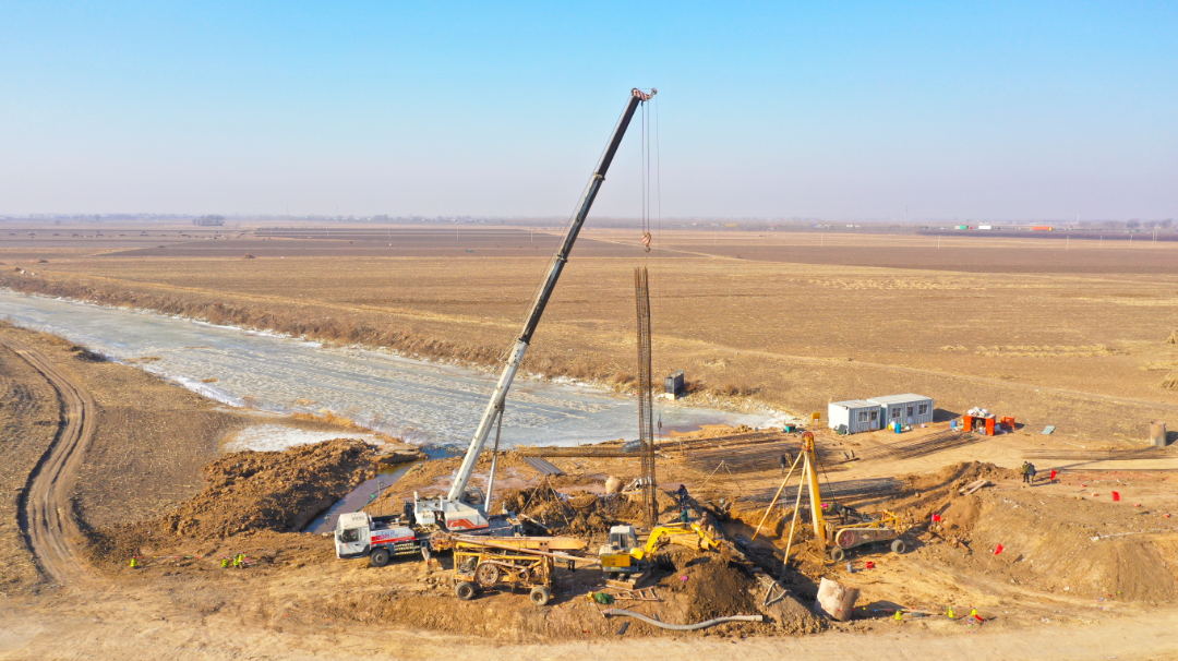2022年1月7日,放心橋工程正式啟動,場地平整、臨建搭設(shè)、圍堰引流及樁基礎(chǔ)施工等工序。
