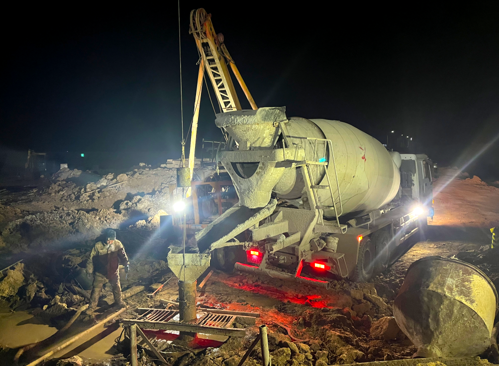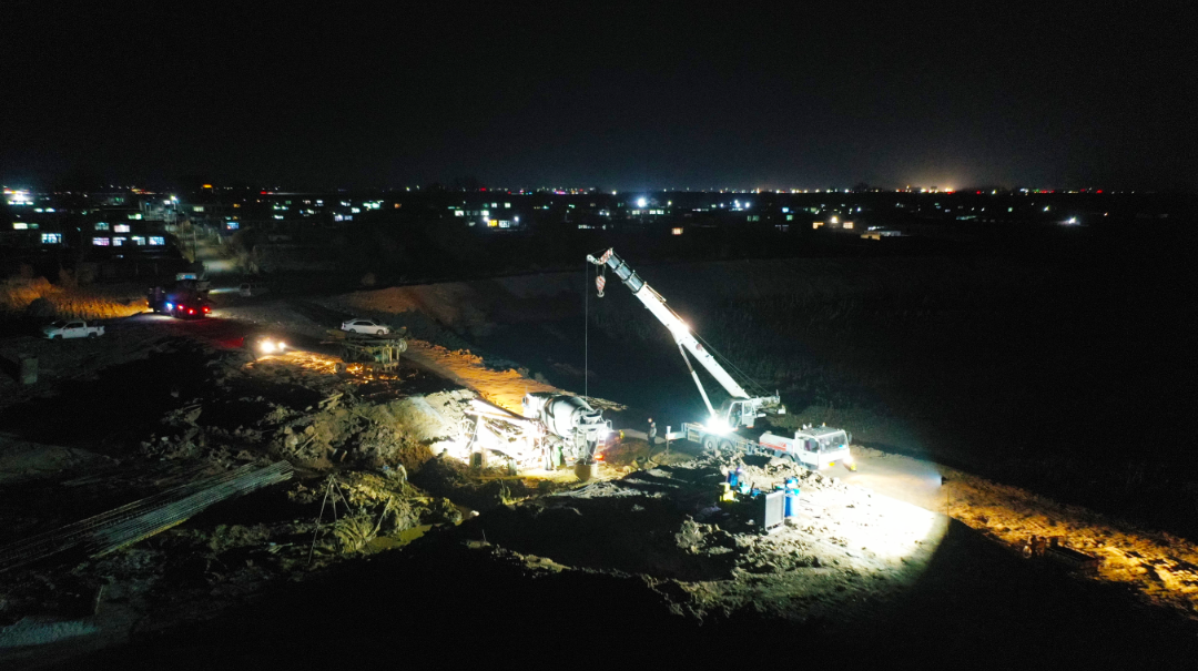 為了家鄉(xiāng)百姓早日走上踏實的橋面,錦州華地建設(shè)集團開展夜間施工,鉆機不斷、澆筑不斷,燈火通明的黑夜里,譜寫了錦州華地建設(shè)集團建設(shè)者緊抓工期的辛勤勞作。