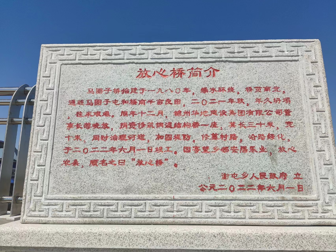 錦州華地建設(shè)集團董事長薄曉放,得知了這一消息后,非常惦念家鄉(xiāng)父老,立即決定捐建一座橋,以解決家鄉(xiāng)人們出行難的問題。因寄望鄉(xiāng)鄰安居樂業(yè),放心農(nóng)桑,故取名放心橋。