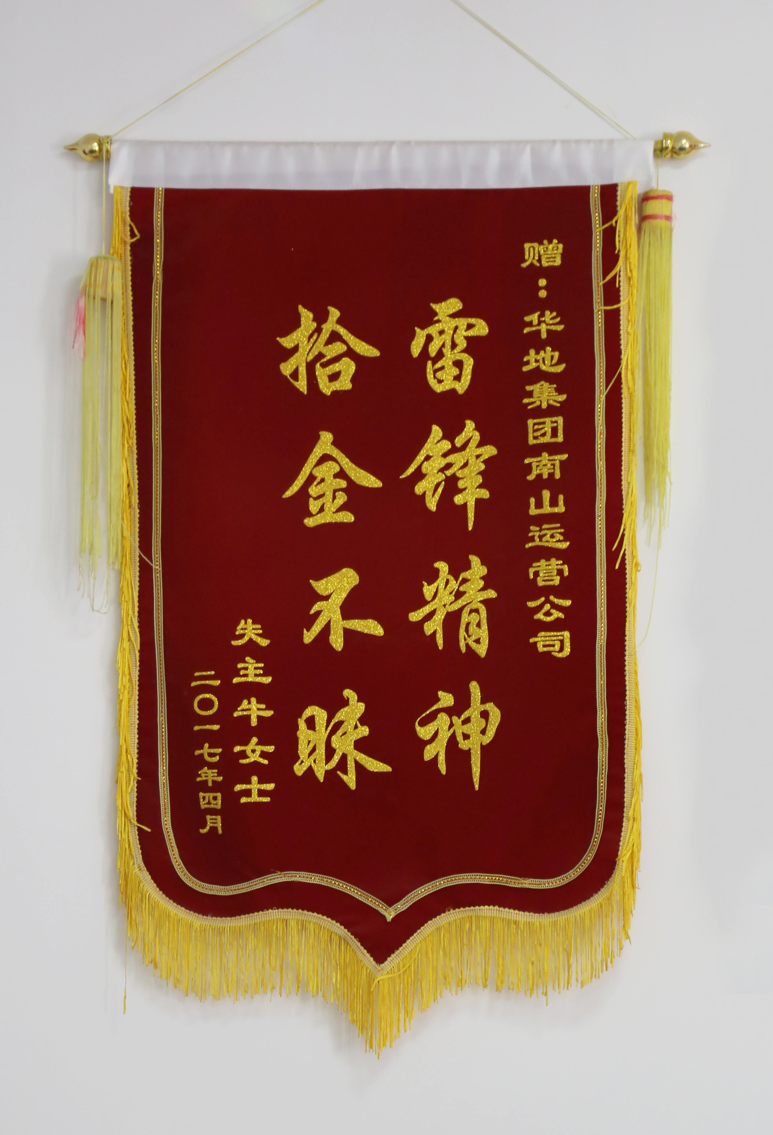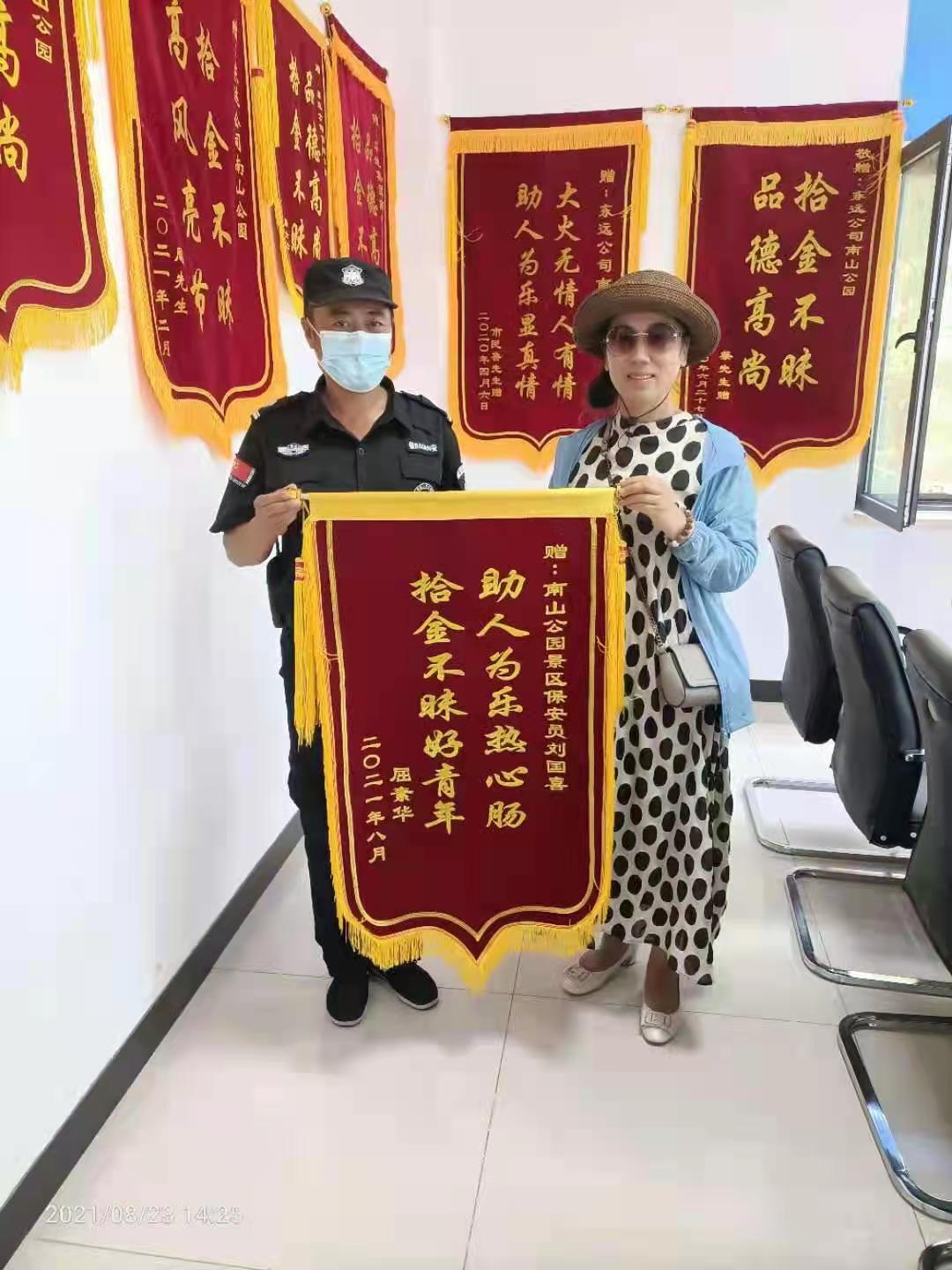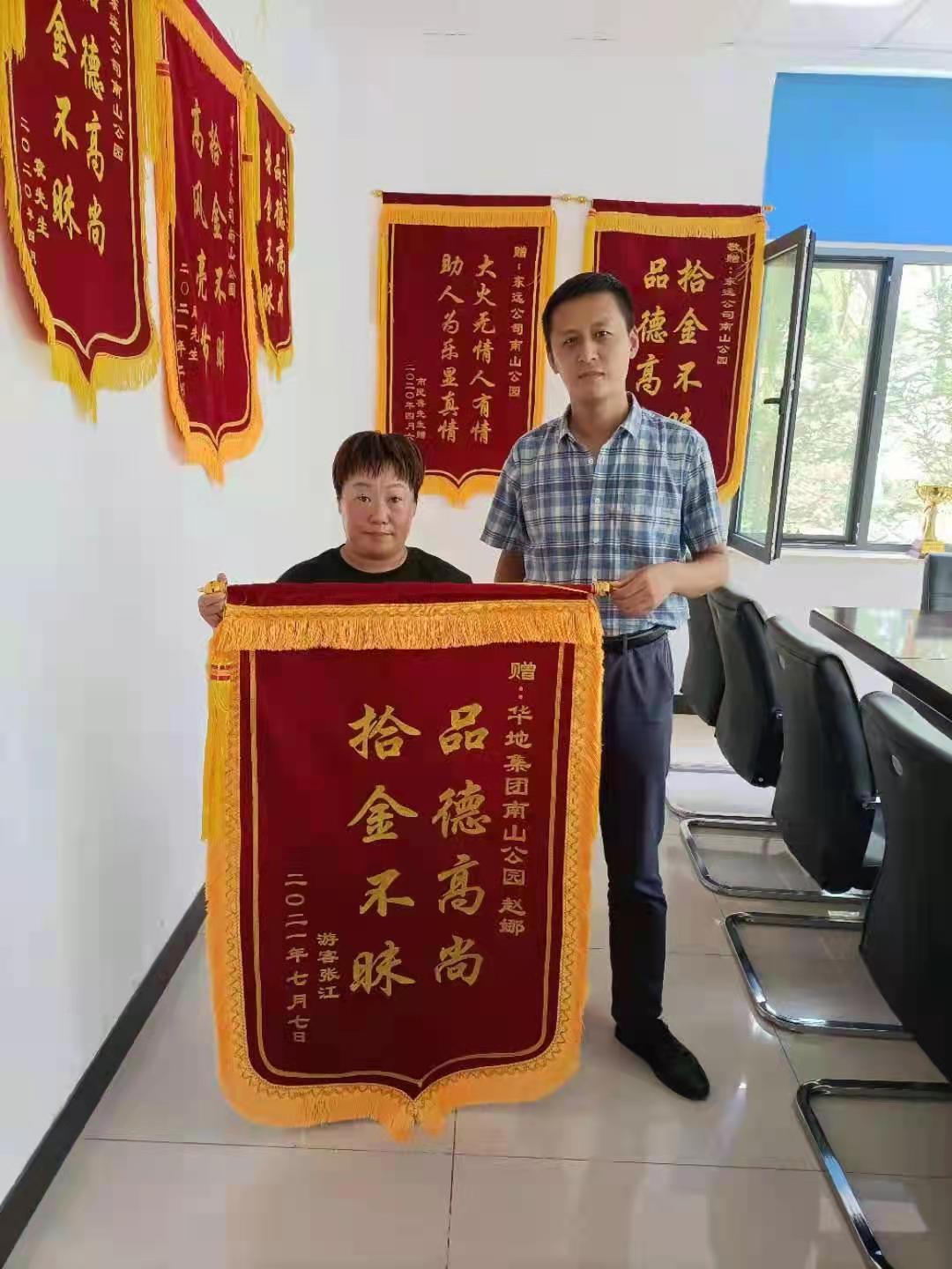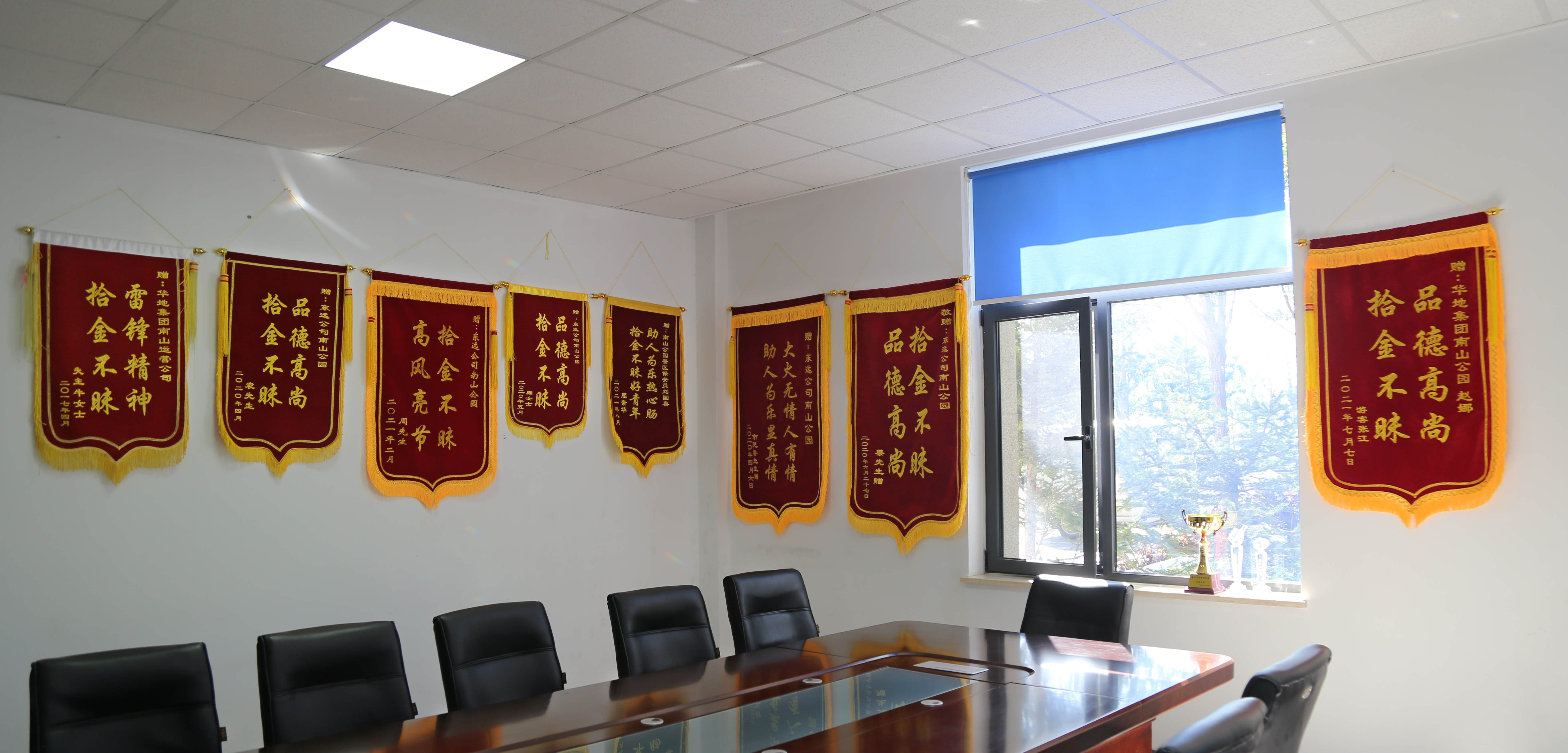 遺失物品登記本上登記著無數(shù)條記錄,身份證、鑰匙、包、手機(jī)、錢等等。那里也記錄了我們所有工作人員365天堅(jiān)守崗位的執(zhí)著與延續(xù)的雷鋒精神。在那會(huì)議室墻面上掛著的一面面錦旗承載了市民對(duì)于我們?nèi)A地集團(tuán)東遠(yuǎn)人的一份感恩、一份贊許、一份鼓勵(lì)。他們用實(shí)際行動(dòng)踐行了作為南山公園守護(hù)者的責(zé)任與擔(dān)當(dāng)。